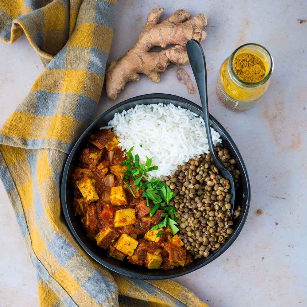 - 120 g de riz basmati cuit 10 minutes à l’eau bouillante